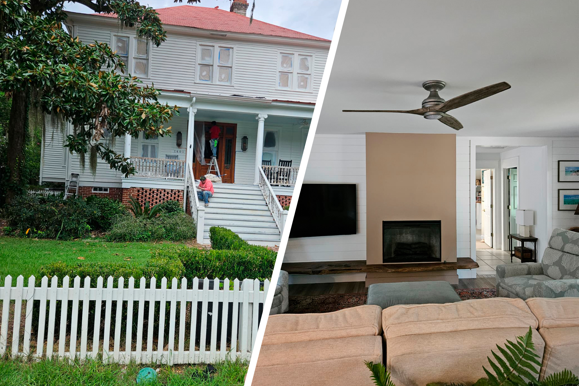 - For exterior painting, we clean and prepare the surfaces (pressure washing, sanding, crack repair, and sealing) to ensure proper paint adhesion.
